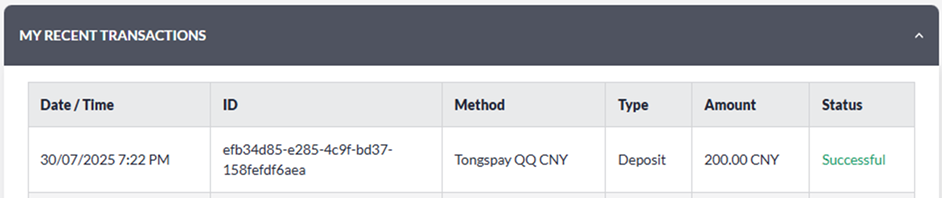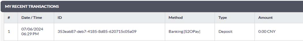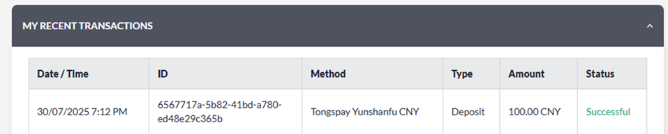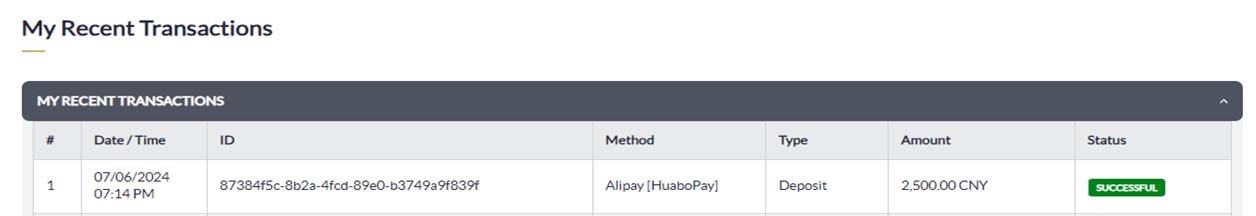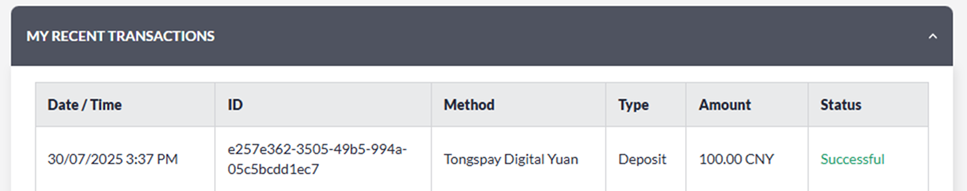7. Kindly check deposit status in 【My Recent Transactions】.