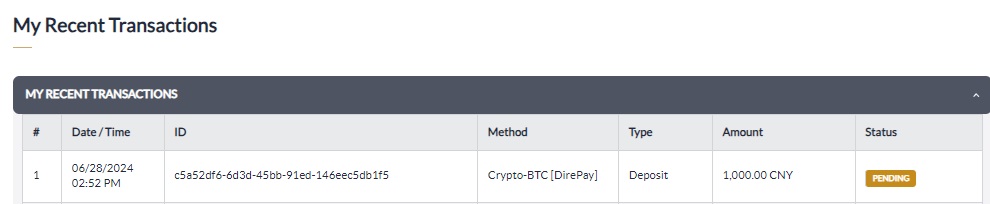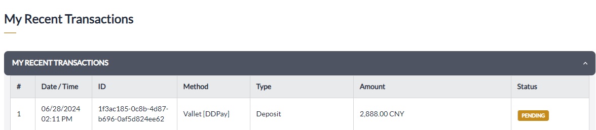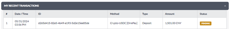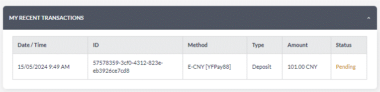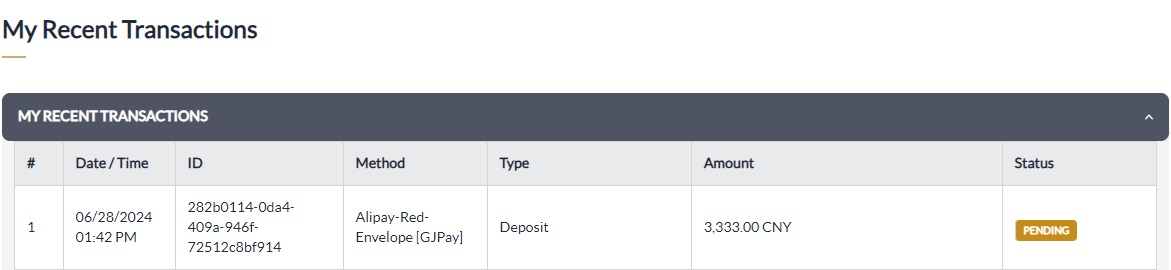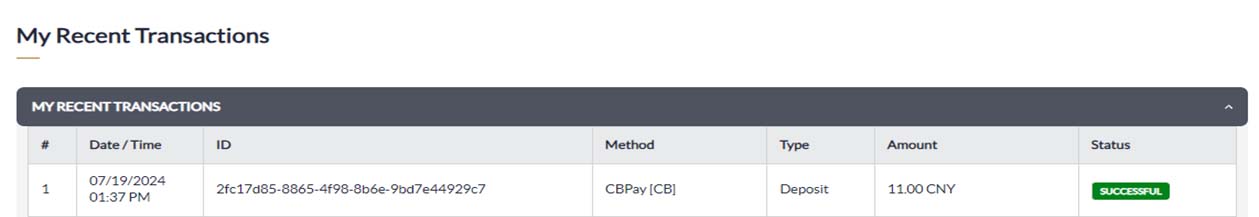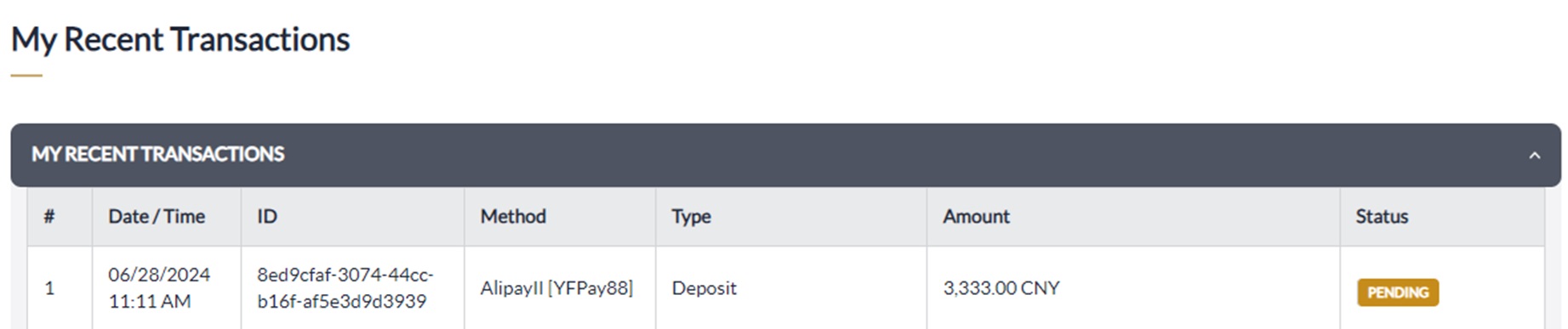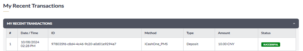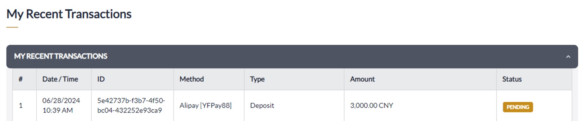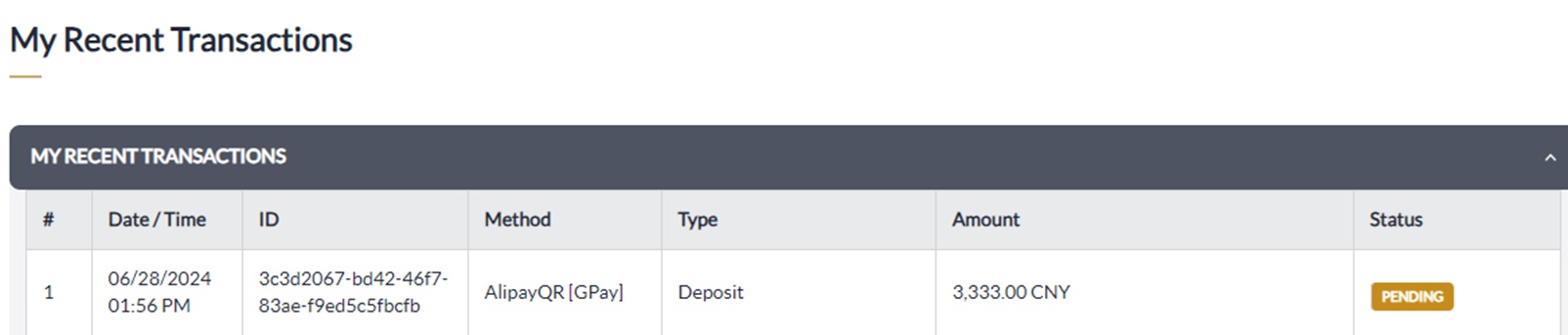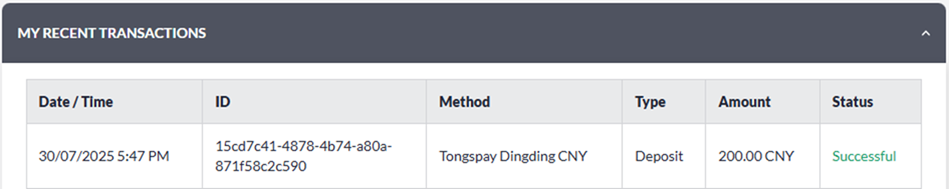 5. Kindly check deposit status in 【My Recent Transactions】.