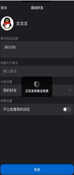 9. Open the QQ software, click the plus sign in the upper right corner, open the scan function, scan the QR code just now, and add the recipient friend