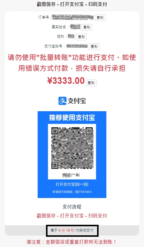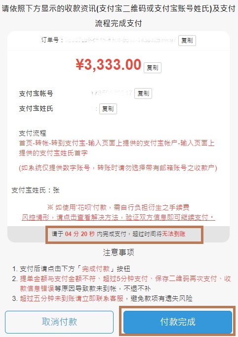 5. Follow on-screen instructions, complete within time limit and click 【付款完成】