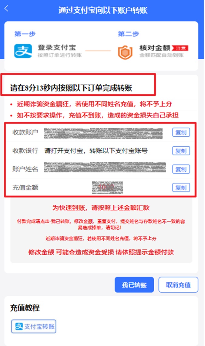 5. Follow on-screen instructions, complete within time limit, click【我已转账】