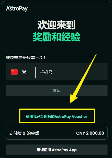 4. Please click【使用我已经拥有的AstroPay Voucher】