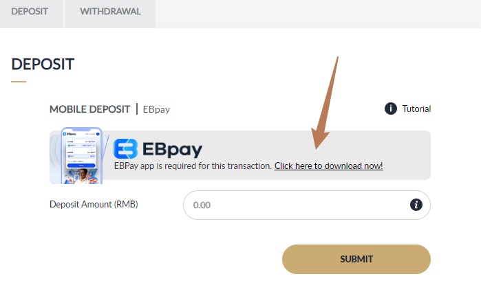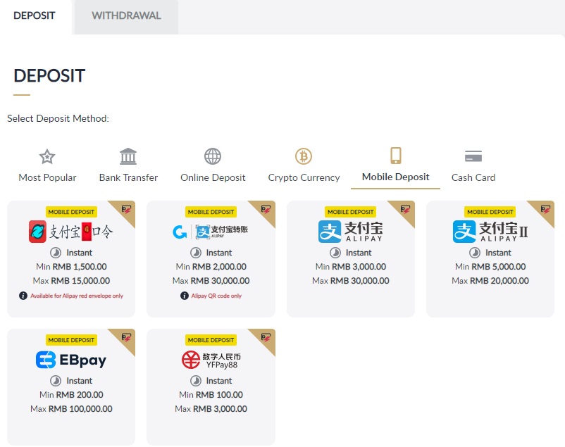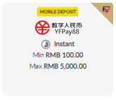 1. Select deposit method "Mobile Deposit" and choose "YFPay88"
