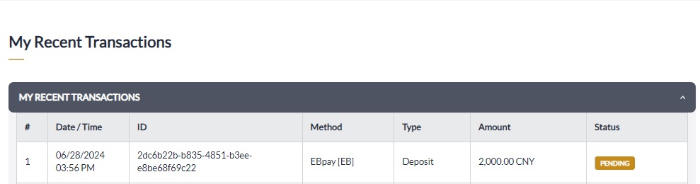 6. Kindly check deposit status in 【My Recent Transactions】.