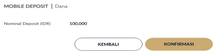 - Klik tab "DEPOSIT" → Klik "MOBILE DEPOSIT" → Klik "DANA".