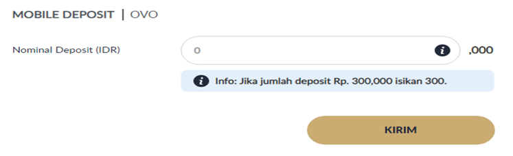 - Masukkan jumlah deposit Anda → Klik "KIRIM".