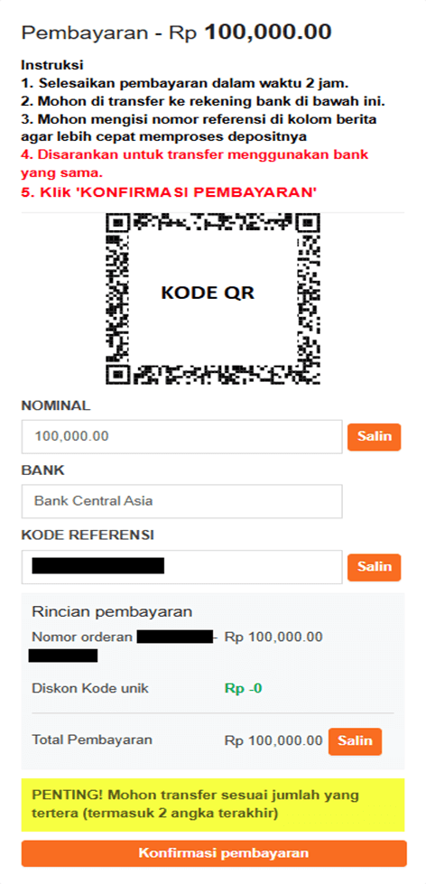 - Scan kode QR yang ada untuk segera transfer. Setelah itu, klik "KONFIRMASI PEMBAYARAN".