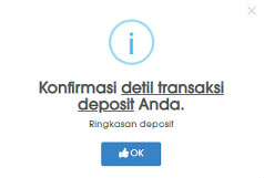 - Deposit akan langsung diproses ke Dompet Utama setelah transfer dana berhasil.
