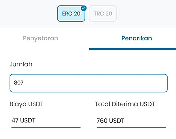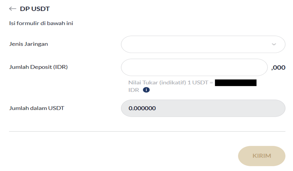 - Pilih "Jenis Jaringan" Anda di antara 2 pilihan yaitu: ERC20 atau TRC20 → Masukkan jumlah deposit Anda → Klik "KIRIM".