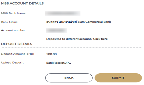 - Review and click "SUBMIT" or click "Click here" if deposited to different account