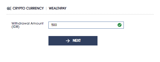 - Click DEPOSIT >> WITHDRAWAL tab >> select WEALTHPAY symbol
