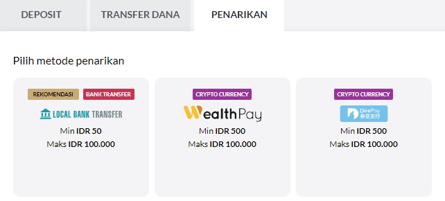 - Klik DEPOSIT >> pilih WITHDRAWAL >> pilih simbol WEALTHPAY