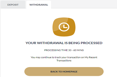 - Click CONFIRM to confirm your withdrawal, or click BACK to edit